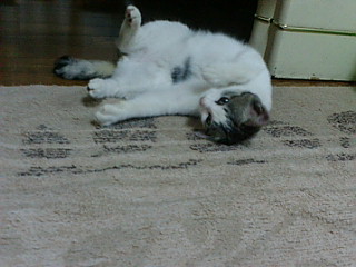 ミーは足が長くしっぽも長く、顔もカッコイイ、ルックスは最高で自慢の猫でした。ミーが1歳位の写真です↓写真の上から撮ったので画像悪いですが。