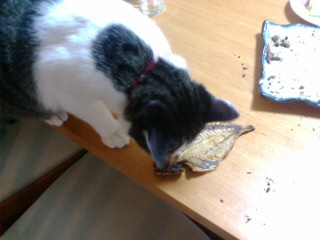 写メは、晩御飯の魚にがぶりついてるれんです。