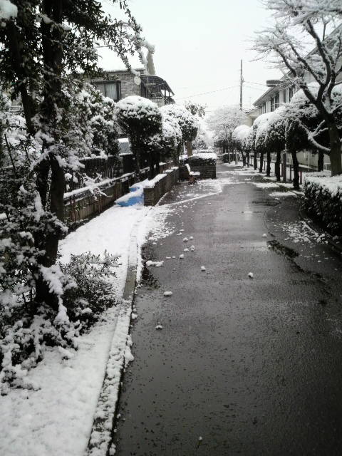 アスファルトには雪が積もってないので、助かります。