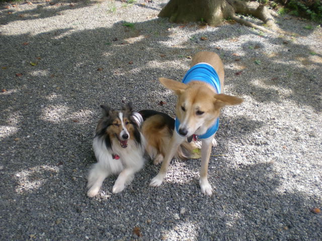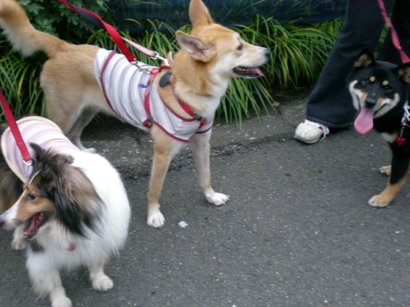 足の長い香と足の短いセーラの散歩、歩く速度はちがうけど、意外とどうにかなってます♪