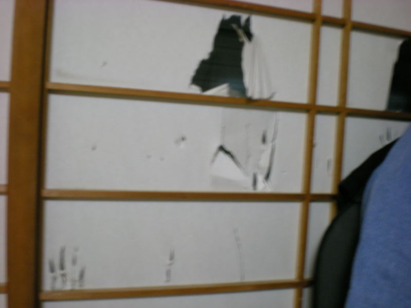 セーラの時はリビングのドアの一番上までふっ飛んでたのですが、リビングの隣の和室のこちらにふっ飛びました。