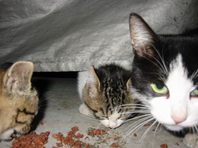 野良ちゃん時代、真ん中がれんです。左の子はれんの兄弟かな?
